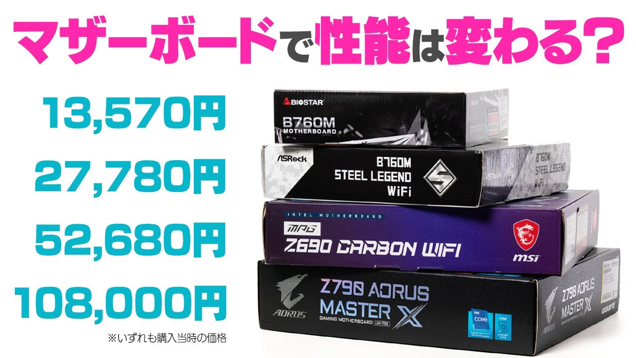 ※参考動画にある通り、高価なマザーボードではCPUの放熱性や電力供給の機能が大幅に向上するため、ゲーミング用途でも兼用して使用する場合(がほとんどだと思いますが)は、それなりの値段のものを購入することを推奨します。